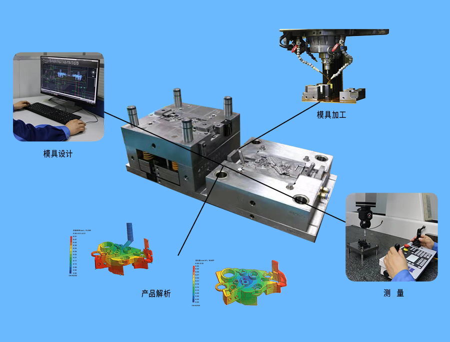 运用流动解析、翘度解析、应力解析等CAE技术为客户提供合适的模具方案。